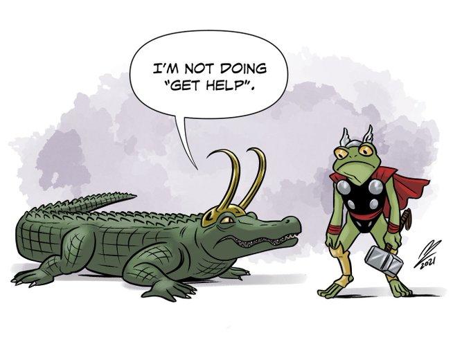 March 11, 2022 “Family Bonding.” Alligator Loki And Thor Get To.