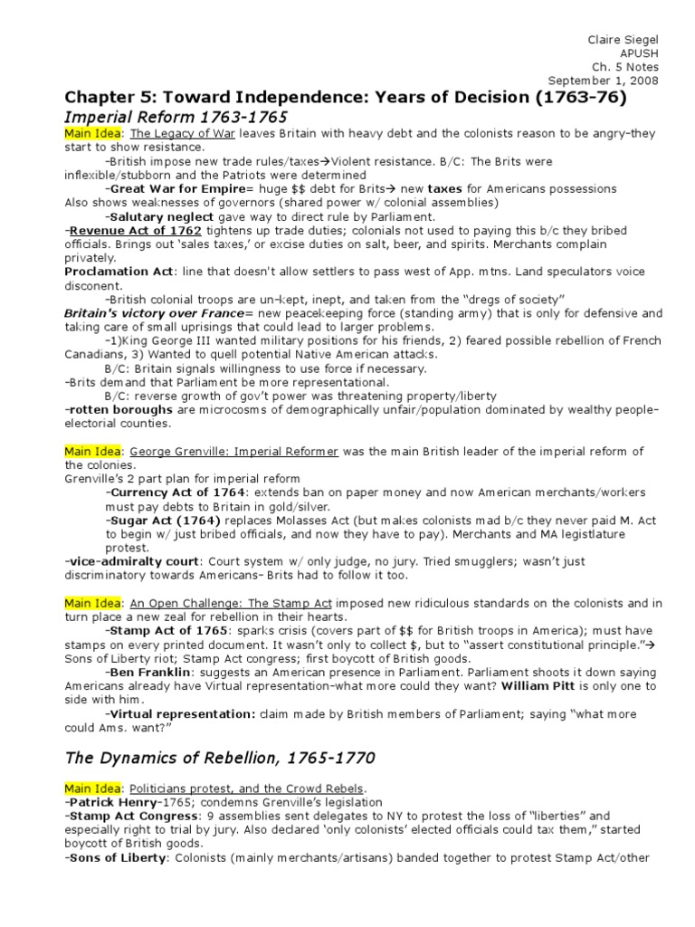Reading guide of chapter 5 for ap united states history. We provide review of units, key concepts and. Web ap united states history chapter 5 quiz from the american pageant textbook. Web apush chapter 5 study guide which was included in a series of laws passed by the british parliament in 1774 that americans.