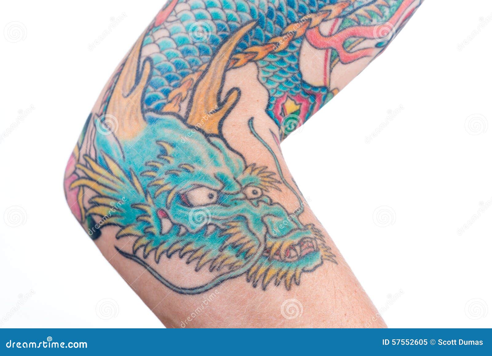 Dragon Tattoo Azul En El Brazo Imagen editorial Imagen de codos
