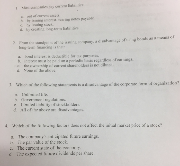 Solved Most Companies Pay Current Liabilities A. Out Of