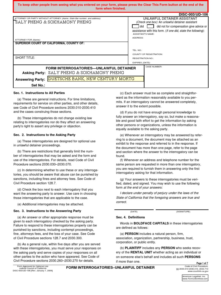 disc003_FORM INTERROGATORIES—UNLAWFUL DETAINER Eviction Interrogatories