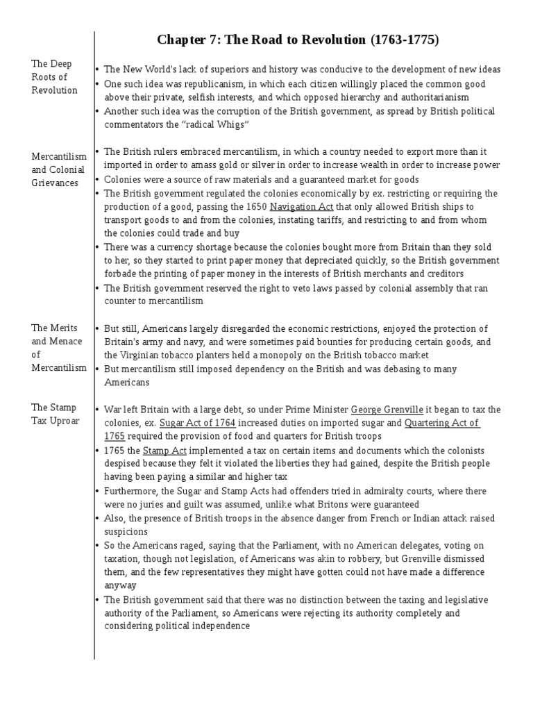 APUSH Chapter 7 Notes Thirteen Colonies American Revolution