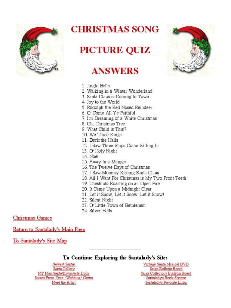 Chrsitmas Song Pictre Game Answer Key Santa Claus Christmas Music
