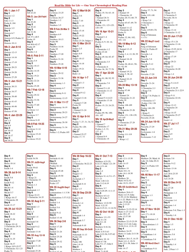 Third, be picky about the size of the print in your bible. Web chronological bible reading plan read the bible in the order that the events happened. Web alternatively, the following bible reading plans are available as pdf downloads for easy printing: Web the blue letter bible “chronological” plan is compiled according to recent historical research, taking into account the.