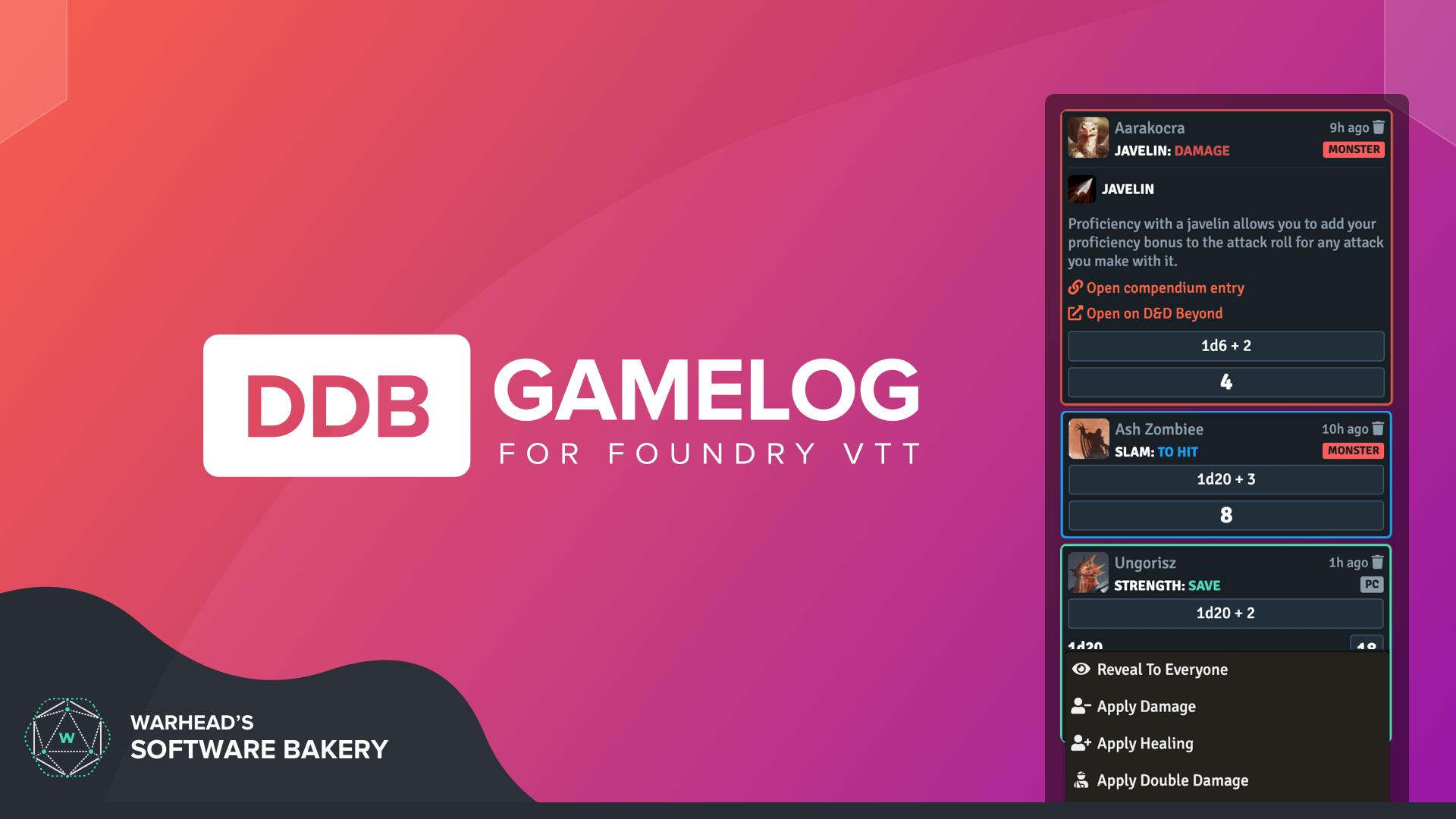O DDB Gamelog torna seus rolos de D&D Beyond visíveis no Foundry VTT