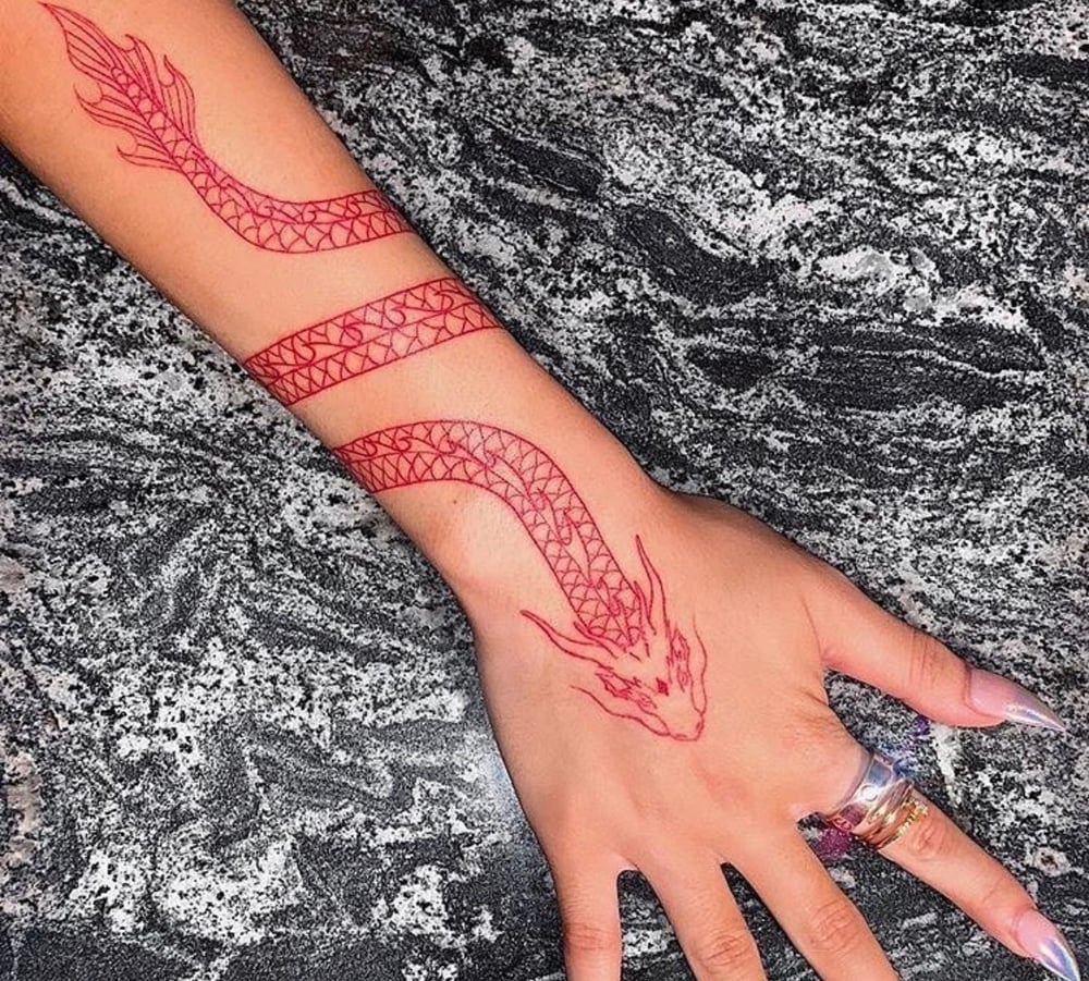 Wrap around dragon wrist tattoo (Available in red or black) Trendontats