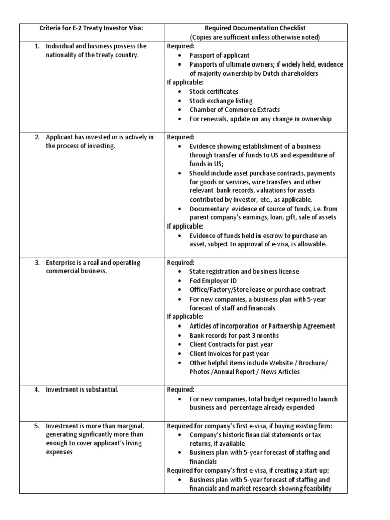 E2 Visa Documents Travel Visa Business