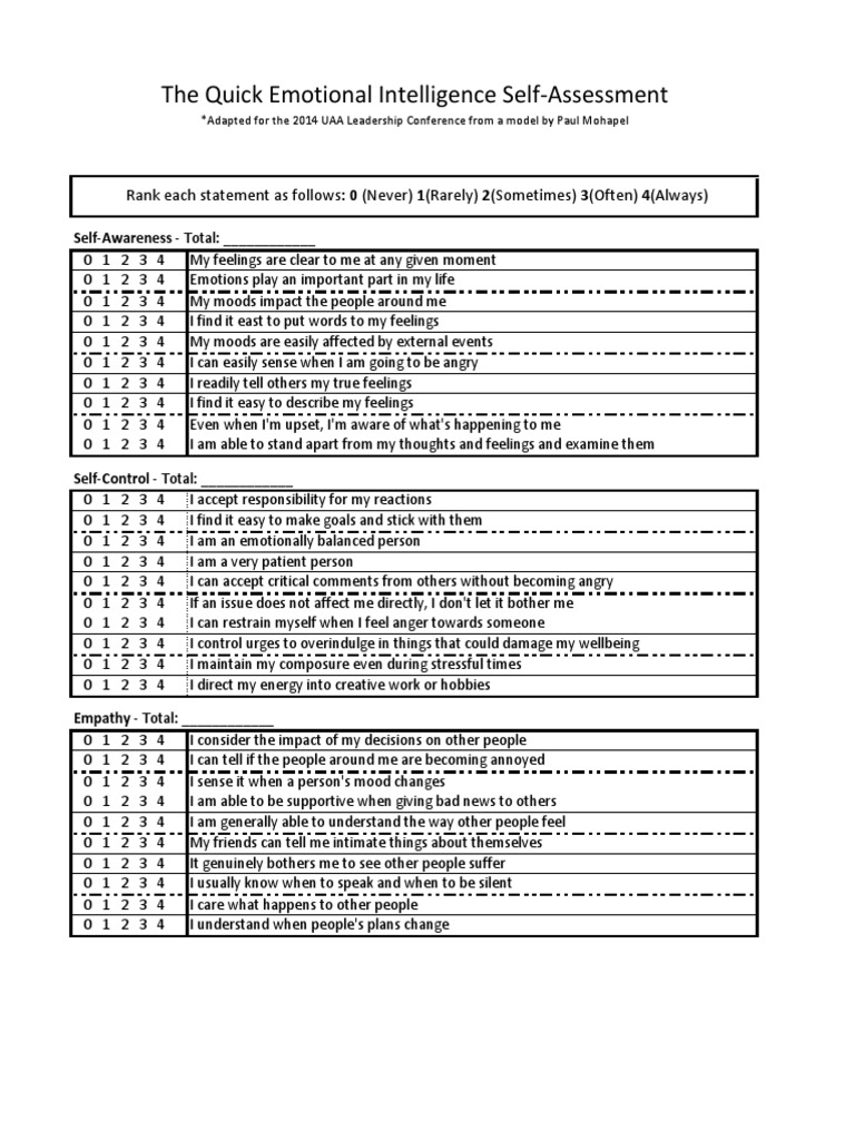 Emotional Intelligence Test Printable
