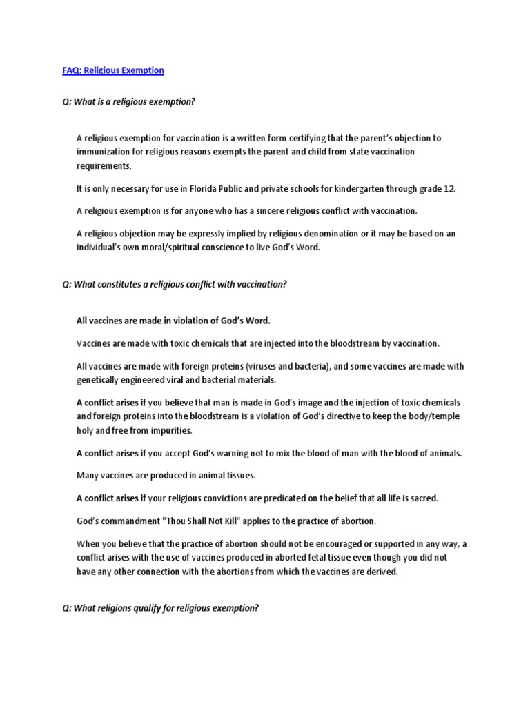 FAQ for Florida Religious Exemption Vaccination Vaccines