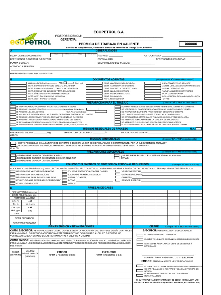 Formato de Permiso de Trabajo en Caliente