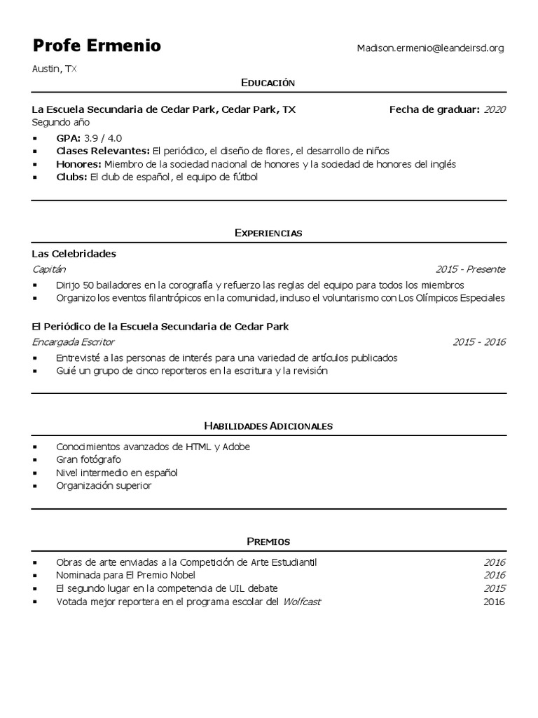 We’ll also highlight some important spanish vocabulary for business, and at the end, you’ll find an example resume that you can use as a model for your own. Most spanish resumes are expected to have the following sections in it: All bilingual spanish resume samples have been written by expert recruiters. Web free resume templates for everyone no matter your job or experience level, our resume templates are suitable for all jobseekers.