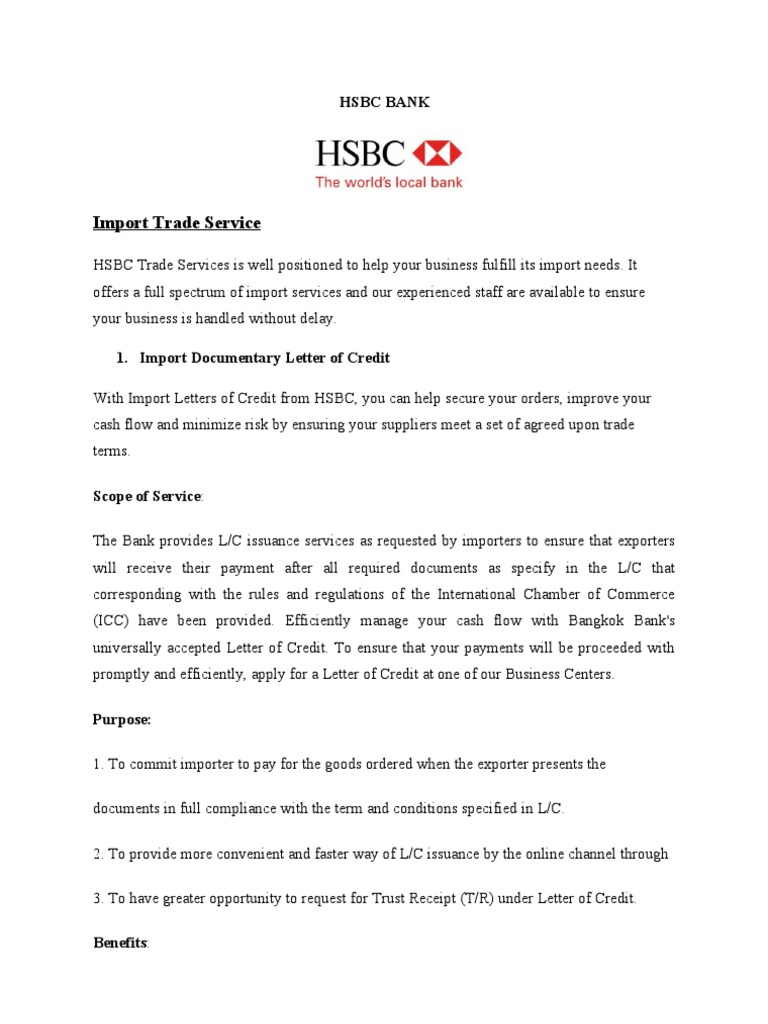 Hsbc Bank Information Letter Of Credit Invoice