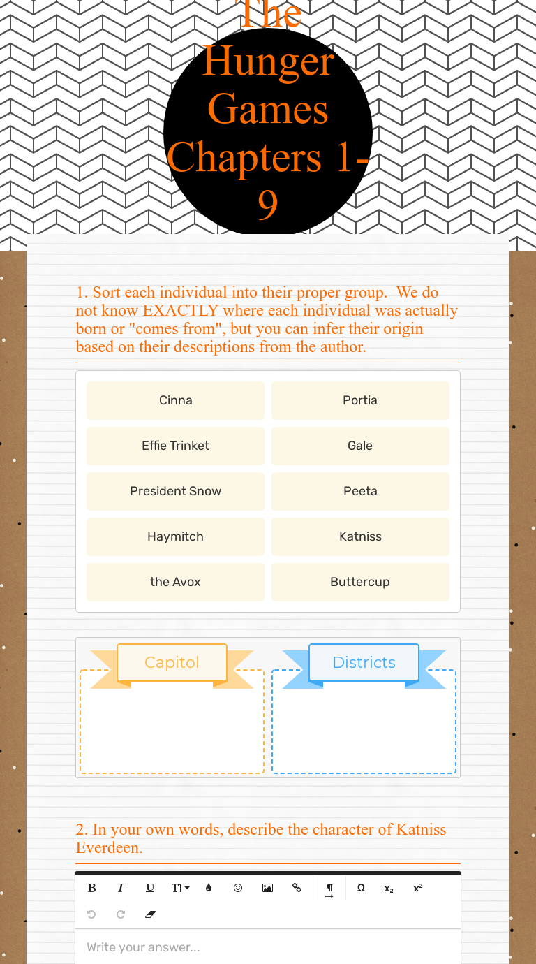 The Hunger Games Chapters 19 Assessment Interactive Worksheet by
