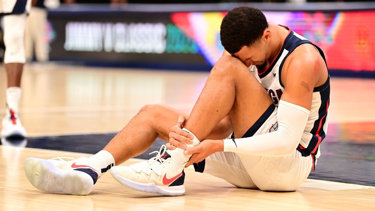 Gonzaga star freshman Jalen Suggs suffers ankle injury vs. West