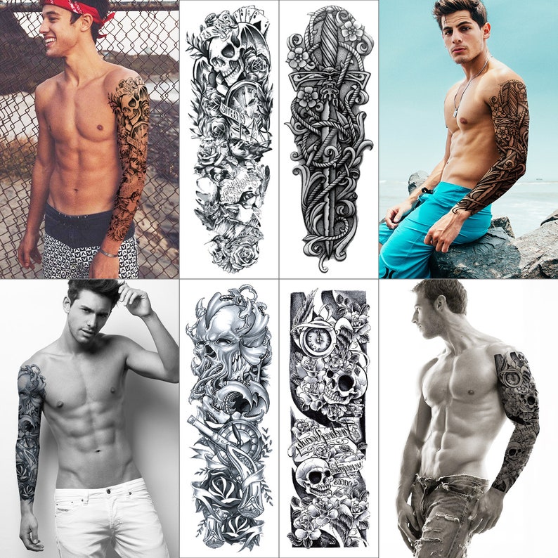 Full Sleeve Realistic Arm Temporary Tattoo For Men Full Arm Etsy