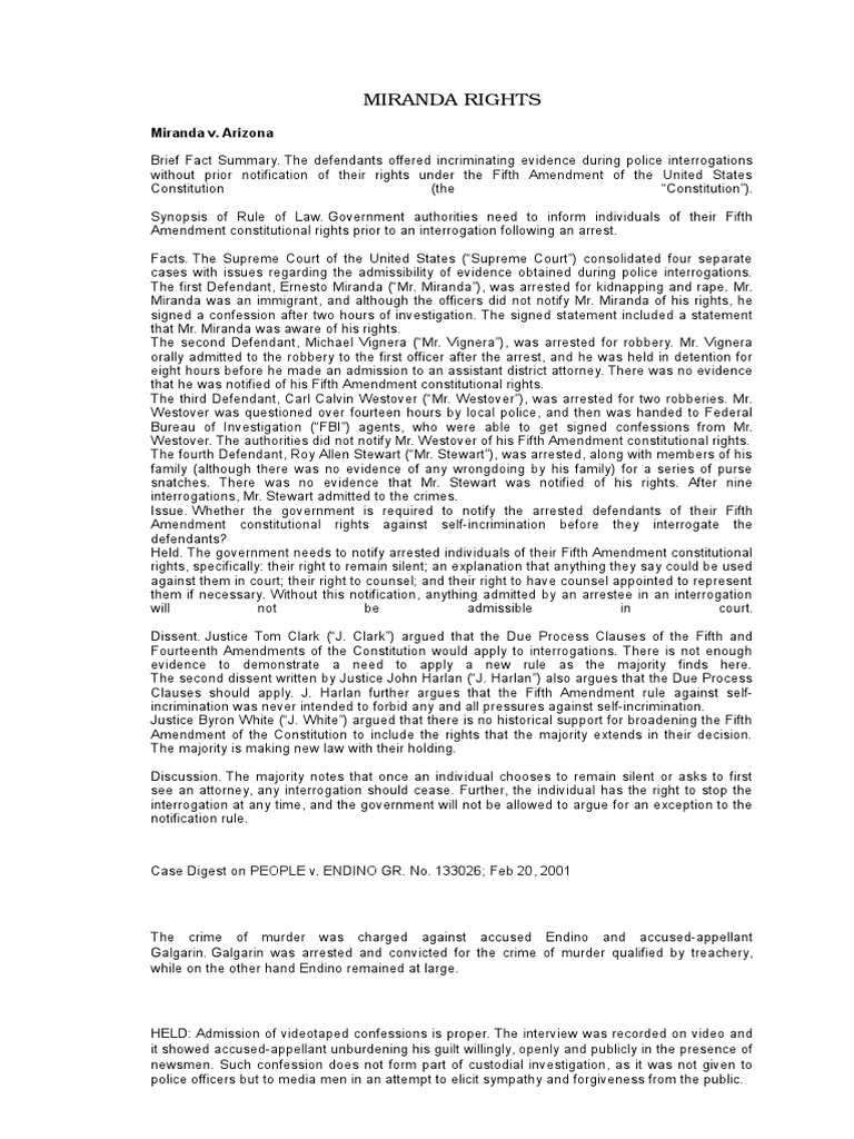 Miranda Rights Paper Miranda Warning Constitutional Law