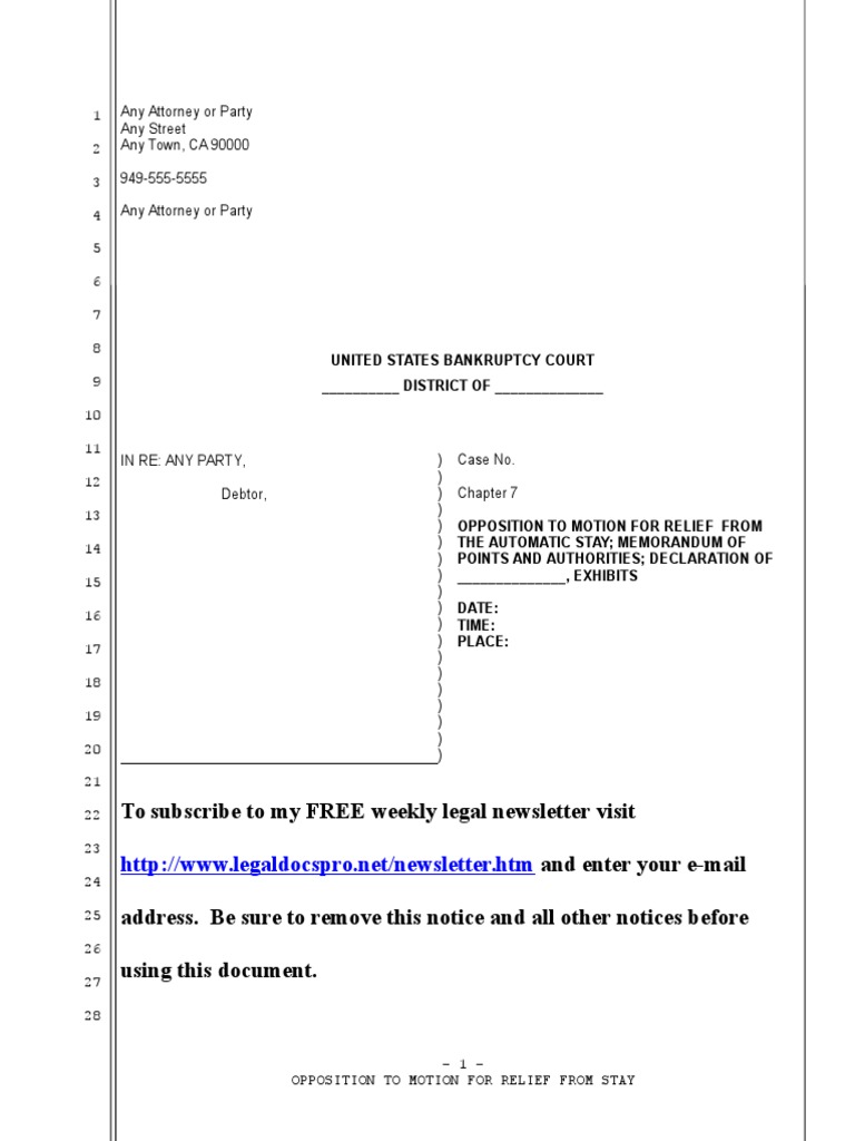 The types of objections you. Web motion for relief from the automatic stay is a request by a creditor to allow the creditor to take action against. For chapter 13 bankruptcy georgia filers, an. Web to file a motion for relief from the automatic stay, the local bankruptcy rules require parties to use mandatory forms. Web a motion for relief.
