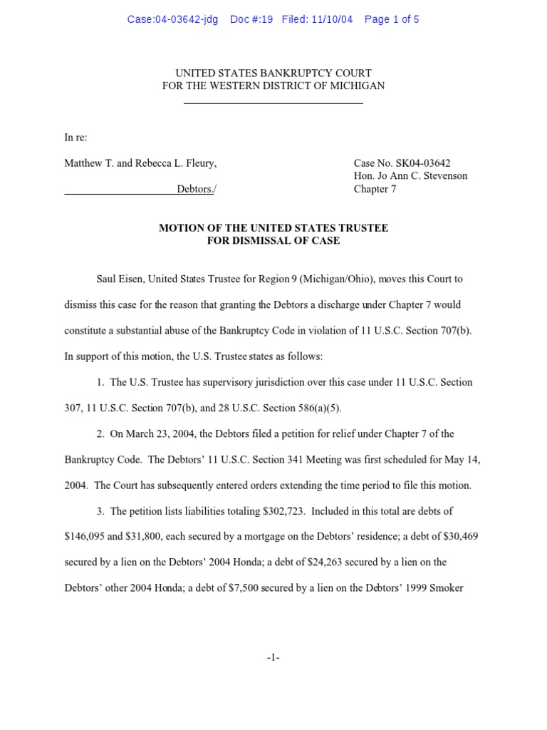 Motion to DismissFleury Chapter 7 Bankruptcy Chapter 7 Bankruptcy