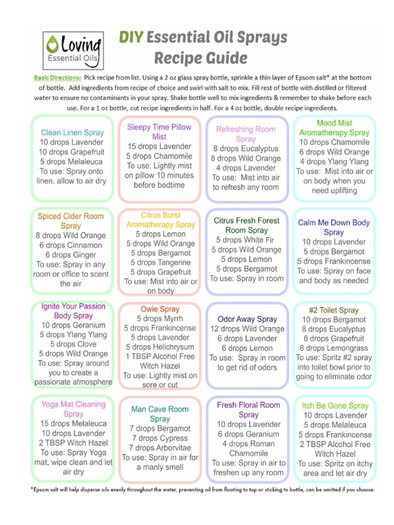 DIY Essential Oil Sprays Recipe Sheet