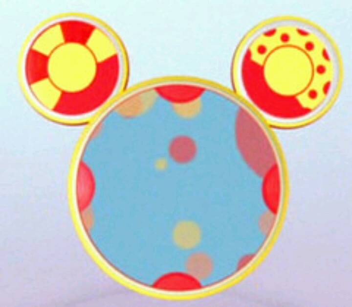 Toodles Is A Flat Floating Yellow Disk That Is Shaped Like Mickey's Head, Red And Yellow Stripes On.