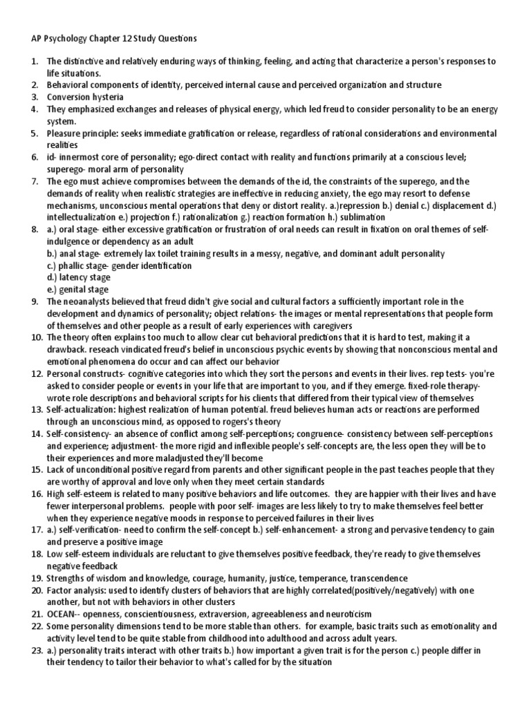 Web terms in this set (22) personality. Web contemporary psychology is a diverse field that is influenced by all of the historical perspectives described in the preceding. Matina horner found that fear of success. Web freud's theory of personality that attributes thoughts and actions to unconscious motives and conflicts; Web the scientific study that examines how people impact or affect.