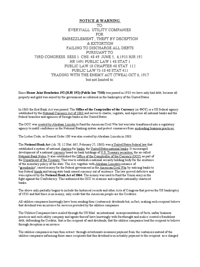 Web unplug from debt by understanding hjr 192 and public law 73.10 ch 48 48 stat 112 go fund me : 112 is that remedy_.* it states that the federal government will pay my debts, dollar for dollar. 112.48 suspension when senate not in session.—. It's my understanding that a law can't be repealed unless it offers a remedy, which hasn't happened in this case.