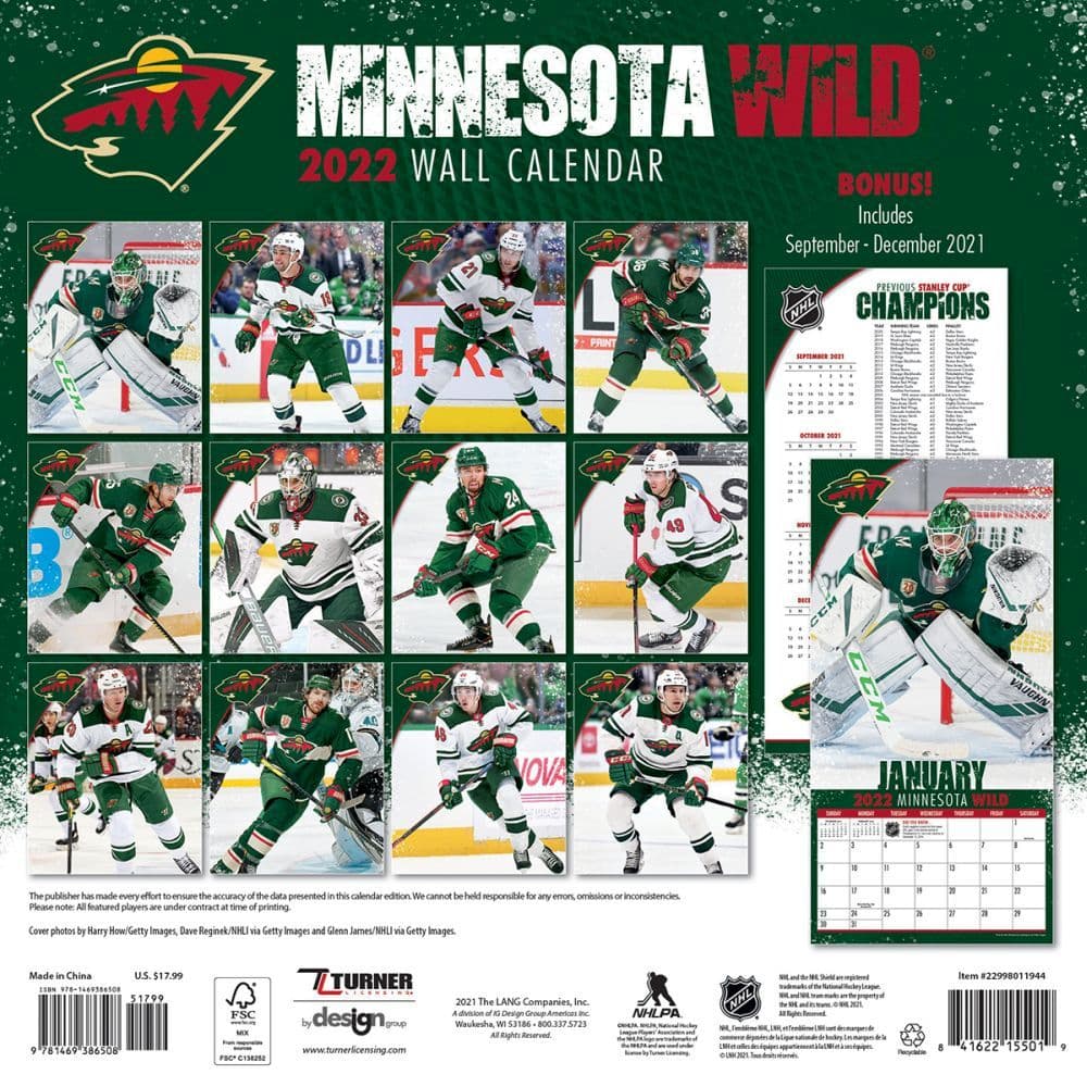 NHL Minnesota Wild 2022 Wall Calendar