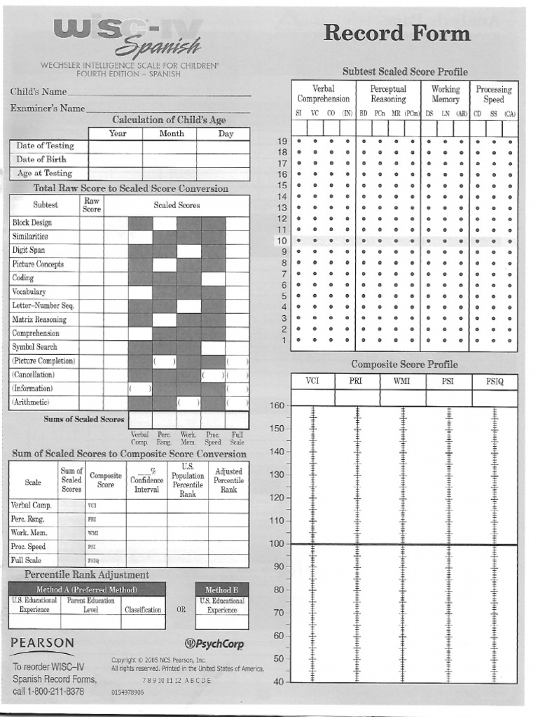 Scribd is the world's largest social reading and publishing site. Web for svris user assistance: The primary and secondary subtests are on a. Web wisc v record forms. Web 1 option from $402.70 test forms & reports booklets, record forms, answer sheets, report usages & subscriptions 9 options from $1.25 support materials manuals, stimulus books,.