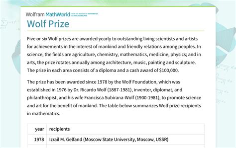 Wolf Prize Math. Web the wolf prize is awarded annually. In the interest of mankind.