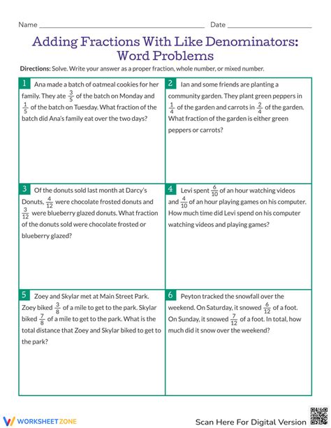 Adding Fractions With Like Denominators Word Problems. Web a potpourri of word problems that involve adding unlike fractions, these pdfs mean that 4th grade and 5th grade students will. Includes fractions with both like and unlike denominators and multiple.