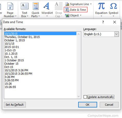 Date And Time Command Word. If you need to add a current date or time stamp, word provides two shortcut keys that do this for you. Click the insert tab in the ribbon.