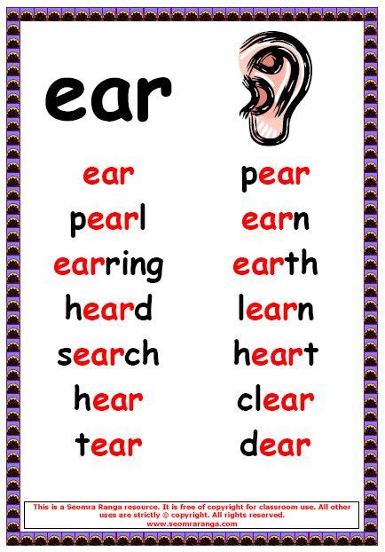 Ear Word List. Web 5 rows word list activities: Ear words using look, say, cover,.