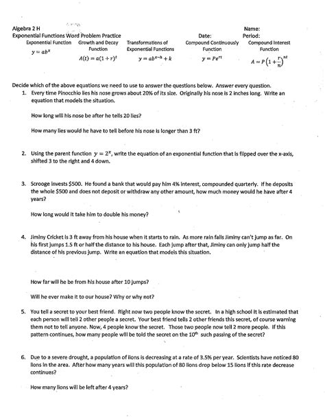 Exponential Function Word Problems Worksheet Worksheet Answers