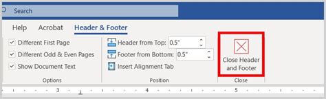 How do you close header and footer in word lopbit