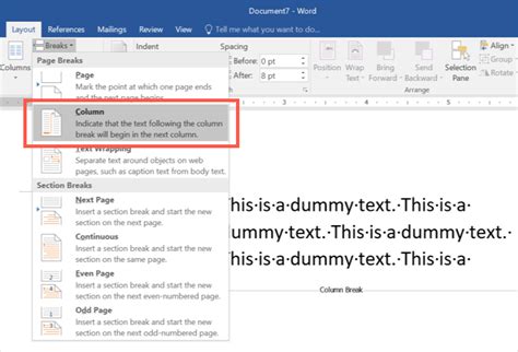 Web insert column breaks in a word document. With a custom column break in your document, you get to specify.