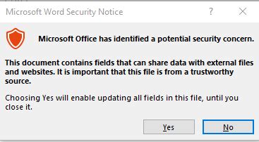 Microsoft Word 2016 gives security notice when pasting images into