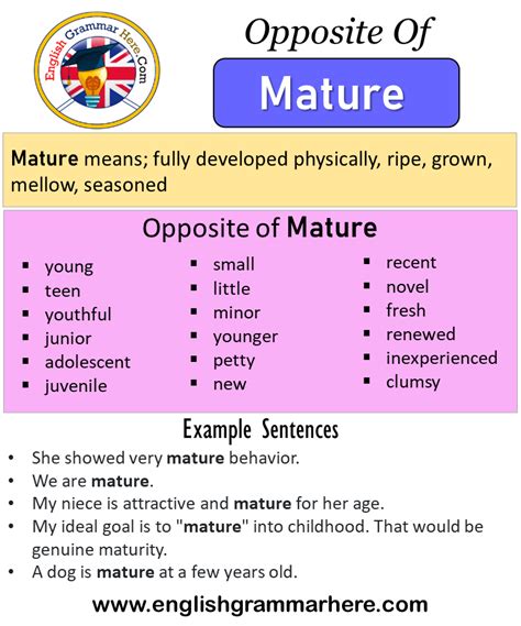 Contexts adjective opposite of having reached maturity opposite of sensible and. Web what is the opposite of mature? Web find 73 different ways to say mature, along with antonyms, related words, and example sentences at thesaurus.com. Web a crossword with a twist.
