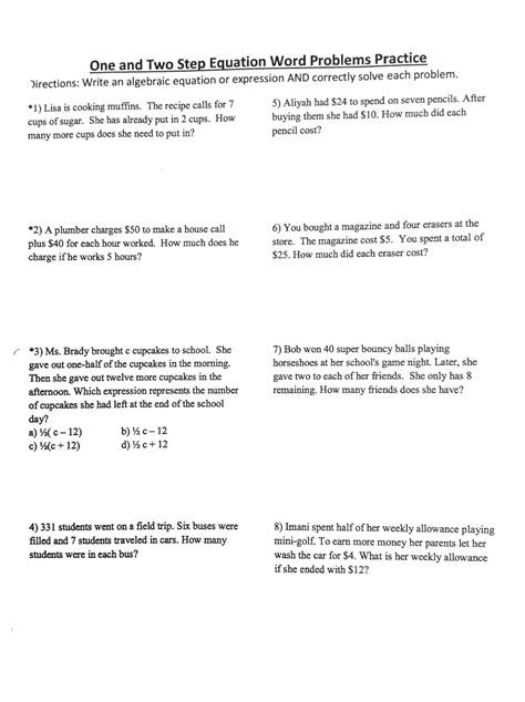 2 Step Equations Word Problems Worksheet