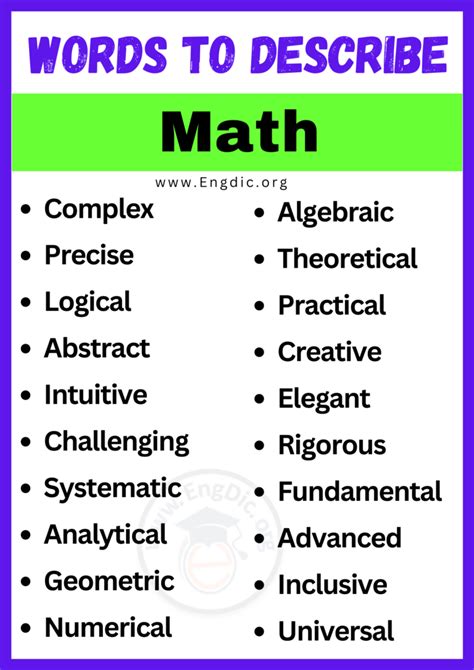 Words That Describe Math. Web a vocabulary list featuring math words. Web words to describe math with meanings.