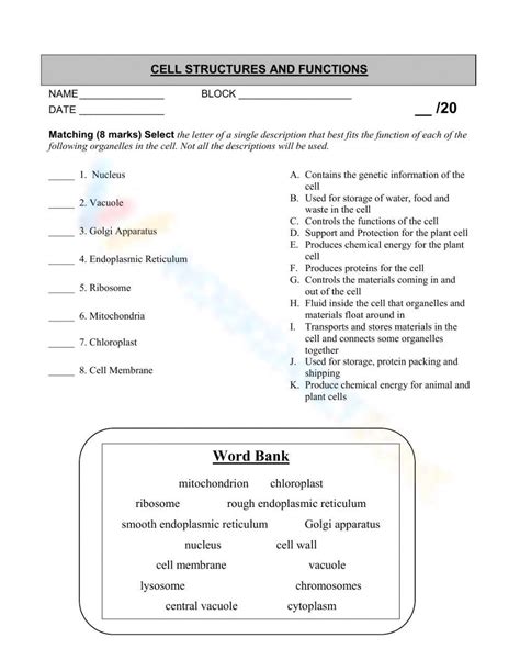 Cell Function And Structure Worksheet. Web 3.1 the cellular level of organization the cell marks the boundary between the nonliving and the living.