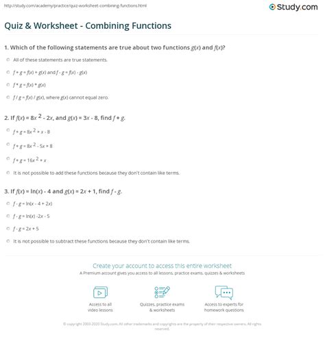 Quiz & Worksheet Combining Functions