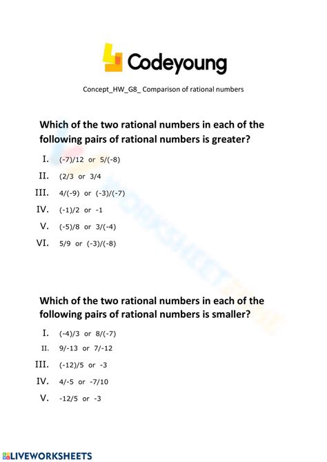 Comparison Of Rational Numbers Worksheet. Web answers for the worksheet on comparison of rational numbers are given below to check the exact answers of the above questions. Web comparing and ordering rational numbers worksheets are a helpful resource for students trying to learn about the different.