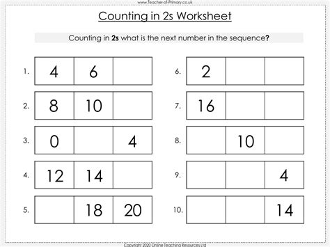 Counting In 2S Worksheet. Use this number line to count by 2s. Complete the activity by filling in the boxes.