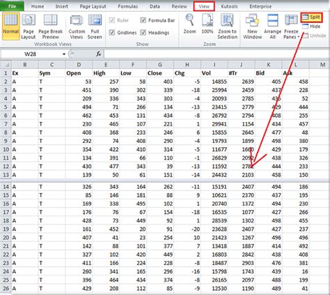 Splitting and Locking Rows and Columns by Freezing Panes in Excel 2010