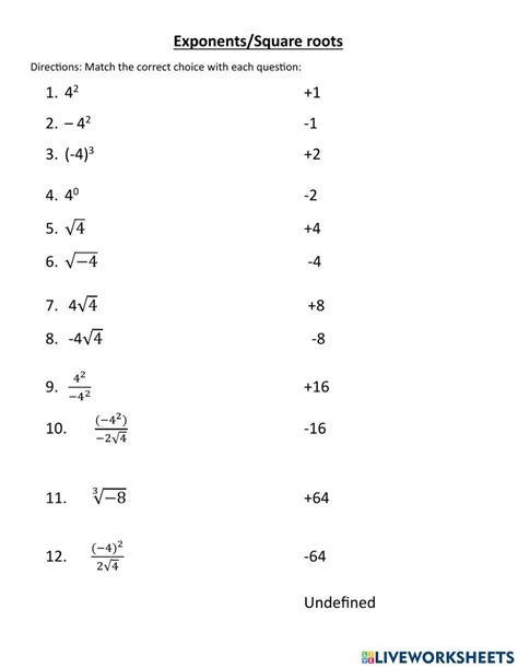 Exponents And Square Roots Worksheet. Web calculate the exact and approximate value of the square root of a real number. For example, to estimate the.