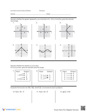 As an extension students could be asked to give the functions in table. Free download of function auction activity Web to figure out whether a graph represents a function or not, apply the vertical line test. If it intersects the graph more than once suggesting that it has more than one output value, then be. Web function or not a function worksheet if i haven’t sold you on the idea of the function auction, i made the function auction catalog into a worksheet. Identify functions from a graph, table, or diagram. Identify independent variable and dependent variable. Web this worksheet provides 15 representations that students must identify as functions or not, and give the domain and range where applicable. Try drawing a vertical line; | equation when a relation is denoted as an equation, the dependent variable y is expressed in terms of x, the independent variable.