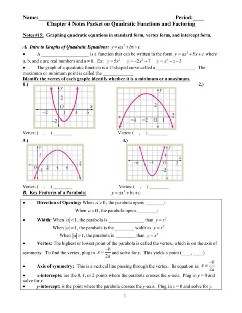 Graphing Quadratic Functions Worksheet Answers Algebra 1