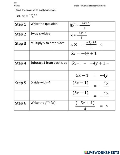 Inverses Of Linear Functions Worksheet. Web graph the inverse for each relation below (put your answer on the same graph).