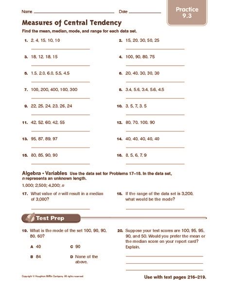 Measures Of Central Tendency Worksheet. Web usually, you can describe the central tendency of a database by using the following measures;