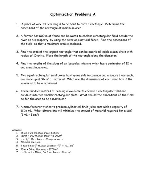 Optimization Problems Worksheet. One common application of calculus is calculating the. Web 4.7.1 set up and solve optimization problems in several applied fields.